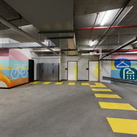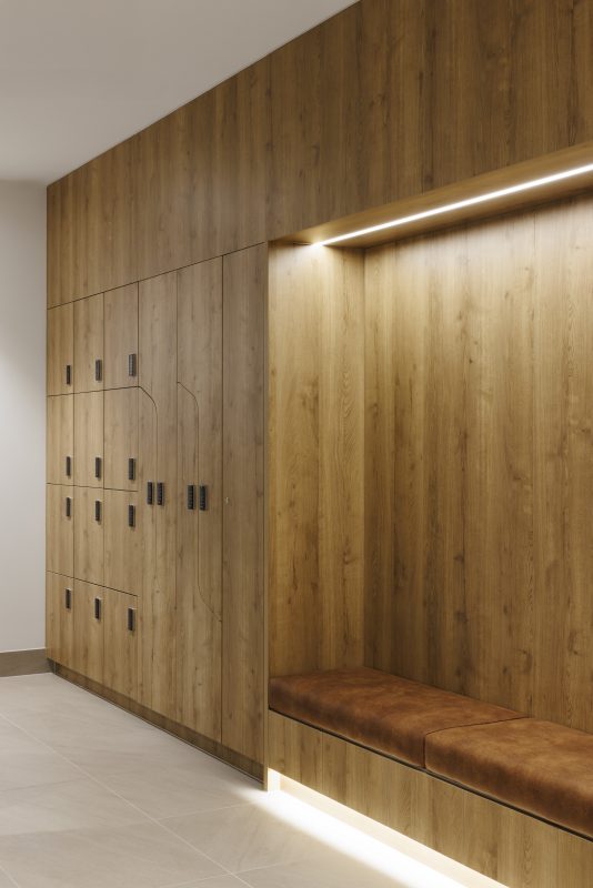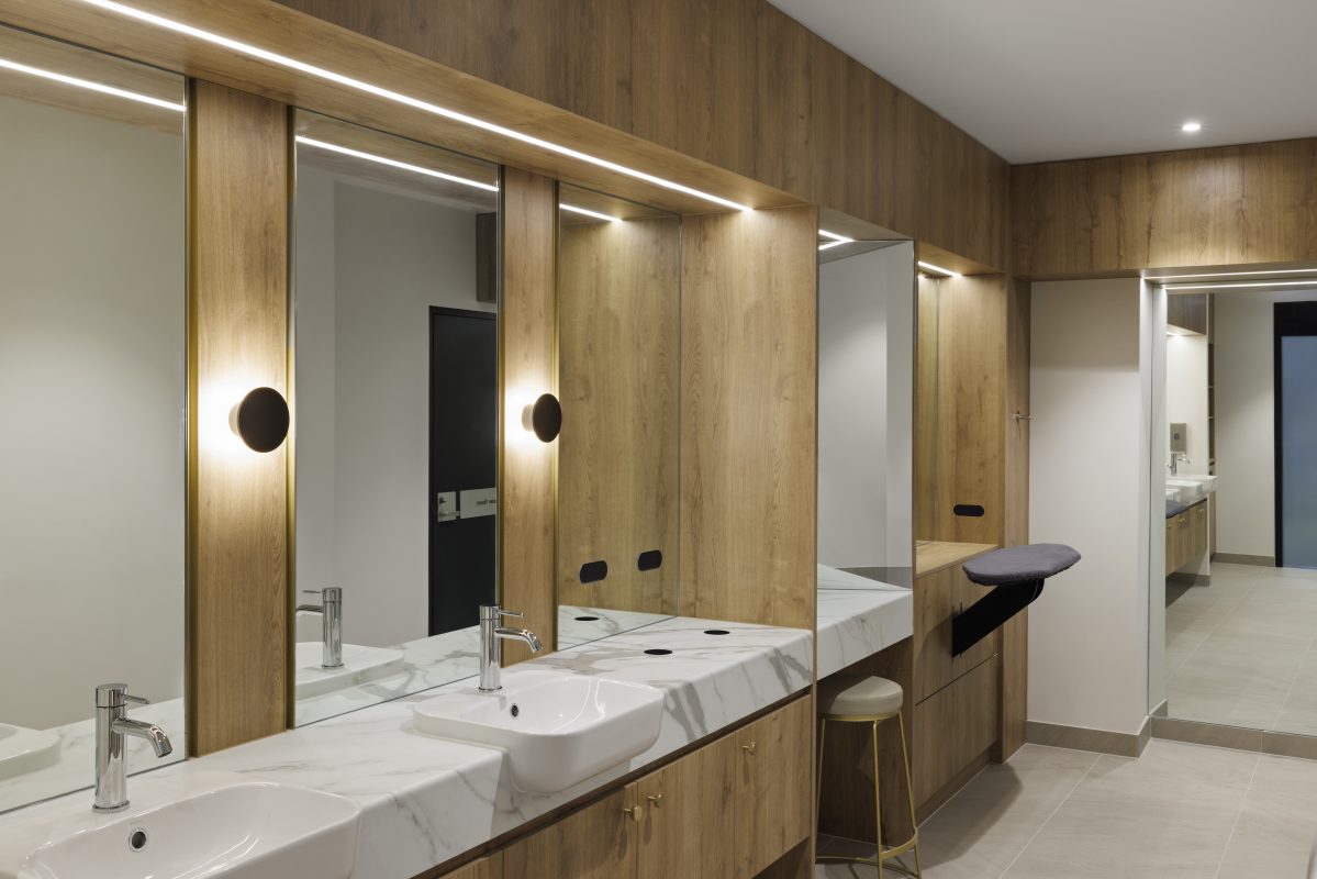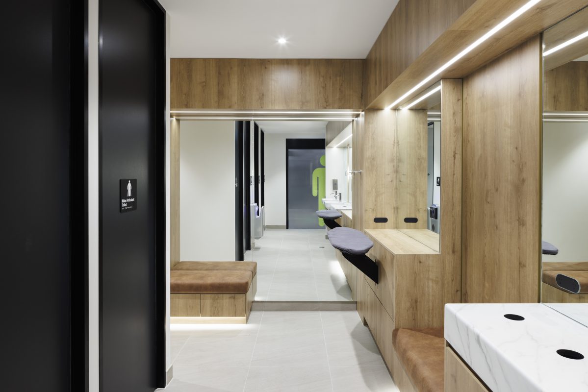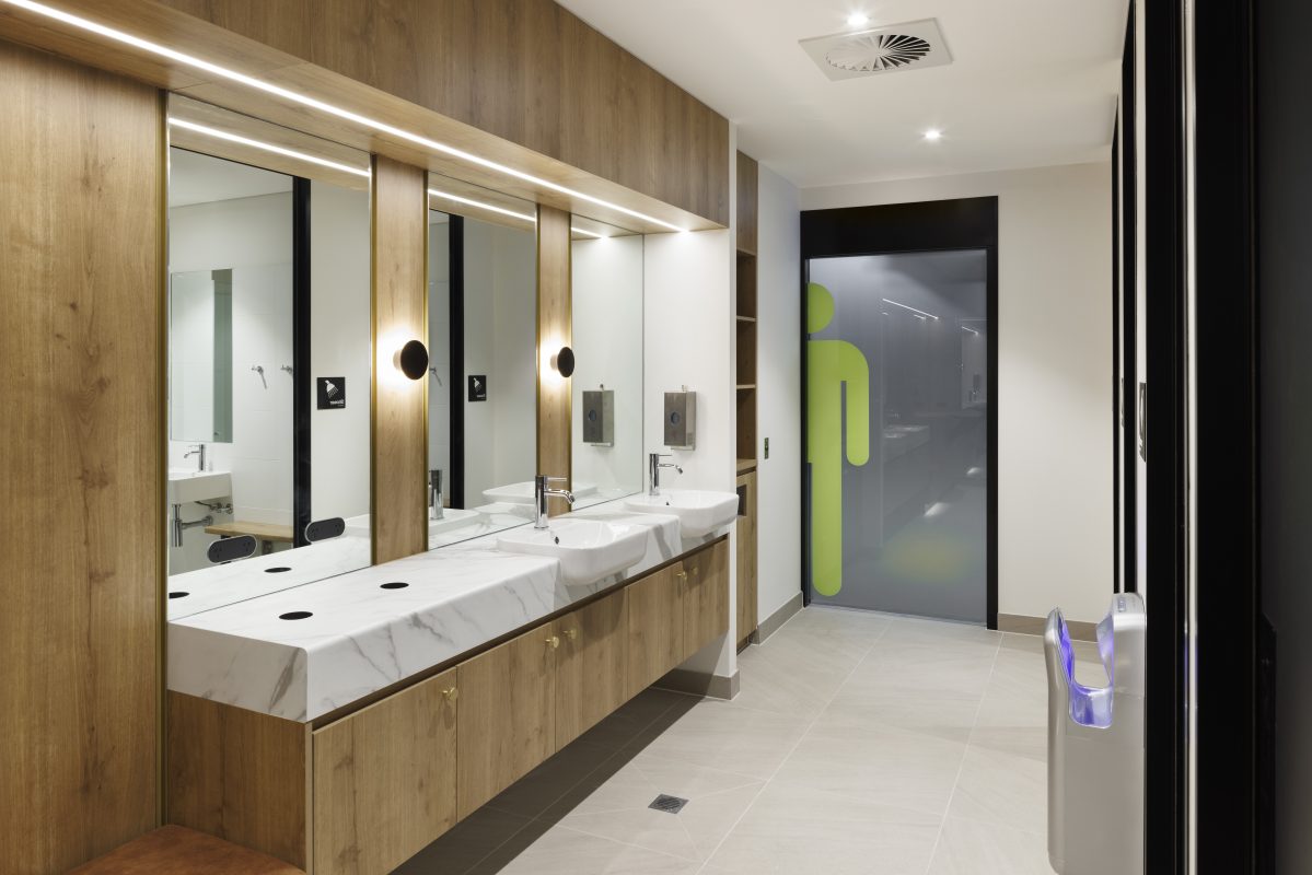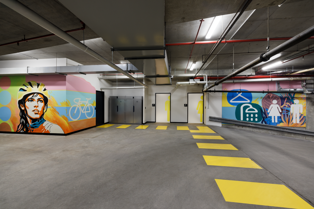 The new purpose-built end of trip facility was built within the basement of another CIA Designs project – Citic House. To align the building facilities with the new ways of working/living and promotion of health and well-being the space incorporates top-tier A-grade end of trip facilities as well as general post/pre-work freshen-up facilities. Included in the space are new-age bike storage, drying cupboards, towel services, showers/toilets, a makeup station, ironing station & hair-drying/straightening stations. Adding this facility was seen as a way to give back to loyal tenants & attract future tenants by aligning the building offering with other surrounding A-grade buildings. The look and feel of the space is a continuation of the soft, natural vibe throughout the other levels. To draw attention to the location in the basement & to foster local community engagement the decision was made to engage a local artist to create a mural that informs the purpose of the facility and links together the façade. The staff in the building are all over-exited to get into the space and start using the amenities