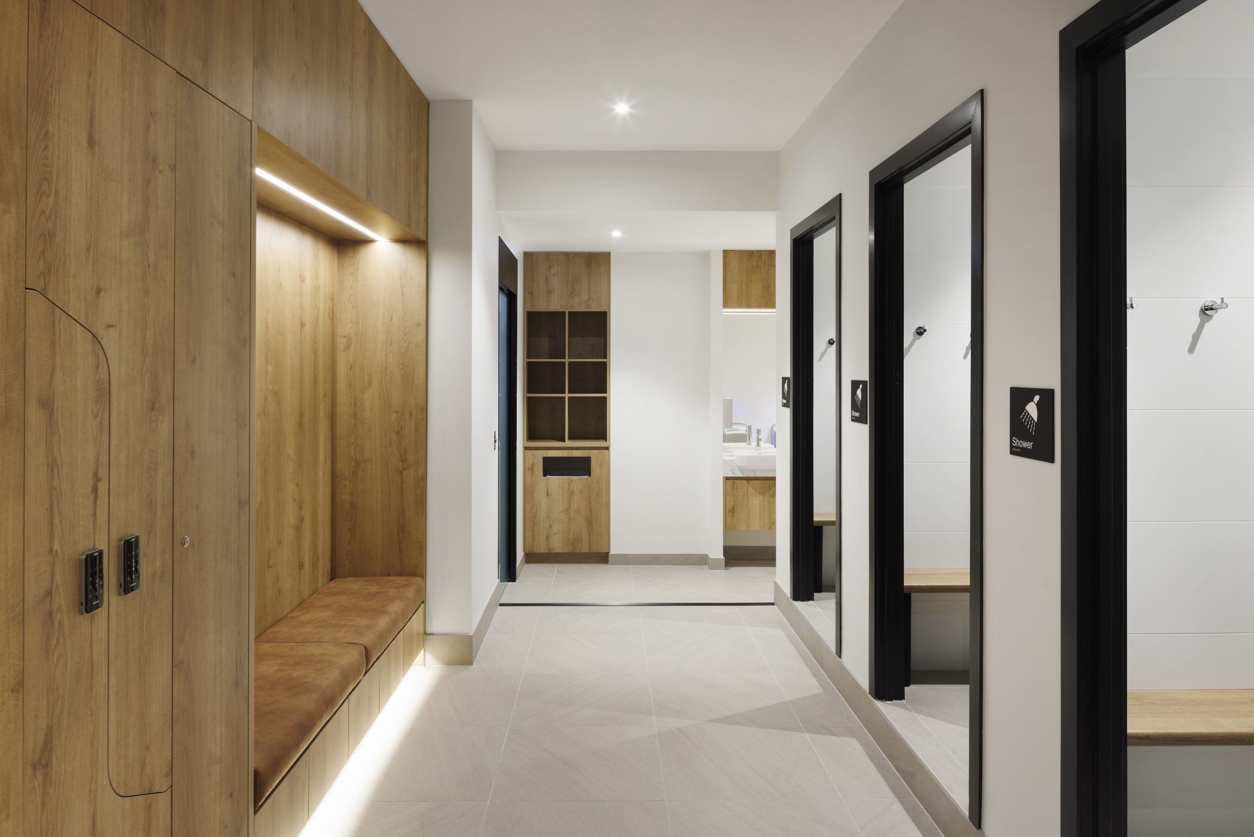 The new purpose-built end of trip facility was built within the basement of another CIA Designs project – Citic House. To align the building facilities with the new ways of working/living and promotion of health and well-being the space incorporates top-tier A-grade end of trip facilities as well as general post/pre-work freshen-up facilities. Included in the space are new-age bike storage, drying cupboards, towel services, showers/toilets, a makeup station, ironing station & hair-drying/straightening stations. Adding this facility was seen as a way to give back to loyal tenants & attract future tenants by aligning the building offering with other surrounding A-grade buildings. The look and feel of the space is a continuation of the soft, natural vibe throughout the other levels. To draw attention to the location in the basement & to foster local community engagement the decision was made to engage a local artist to create a mural that informs the purpose of the facility and links together the façade. The staff in the building are all over-exited to get into the space and start using the amenities